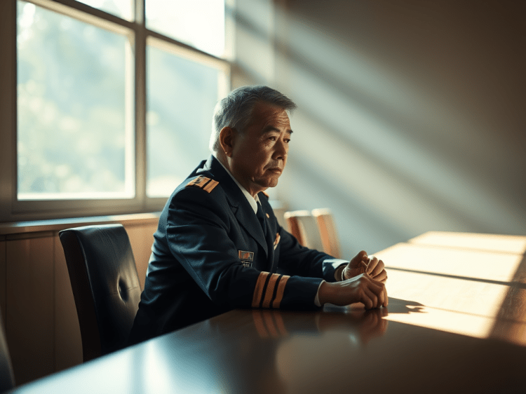 そこには山本が長い机の中央に、沈黙を持って座っていた。窓からは朝方の光が差し込んでおり、日ごろの時間を感じさせるが如く静けさがそこにあった。そこに軽い音を立てて、戸が叩かれ下士官が入ってきて、長門が海に沈んだことを山本に告げるのであった。それを聞いた山本が一瞬、眉をひそめるごとく表情を表した様子で、海軍大ほ室の天井を見上げたが如く、そしてさらにその下士官をいつ目を挙げたが、すぐ様今まで通りの直視を続けるのであった。下士官は一礼をすると、部屋から速やかに立ち去って行って、また新たな沈黙がこの海軍大ほ室に満るのであった。長門の横田艦長とは、自分は呉の海軍士官校で、同期でよく、酒を酒場に飲みに行った。朝方まで語り尽くした友であった。その横田が自分に何も言わずに、微笑を浮かべて静かに海の底へ、何事もなかったように、沈んでいってしまった。そこに山本は、一筋の孤独を感じる自分を思うのだが、さらには、自分も横田、同様の運命に従うといった事を自覚し、いっとき、心を取り直すと言う思いに駆られるのであった。